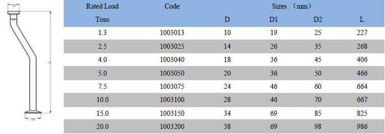 ◎ Se diferencia del anclaje de elevación de cabeza esférica estándar únicamente por su forma acodada, que permite