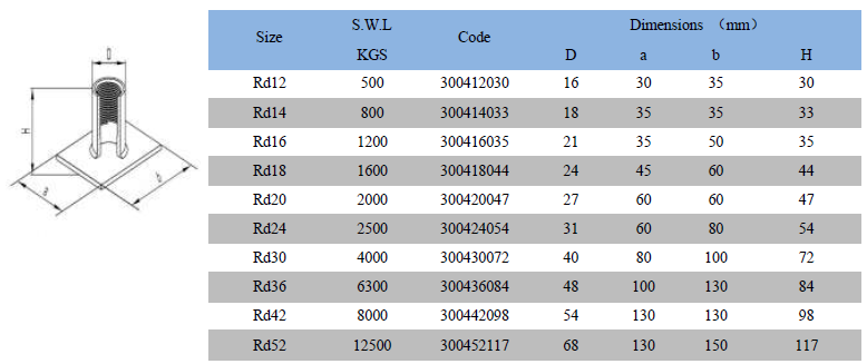 ◎ El casquillo de elevación plano es ideal para elementos prefabricados de hormigón grandes
